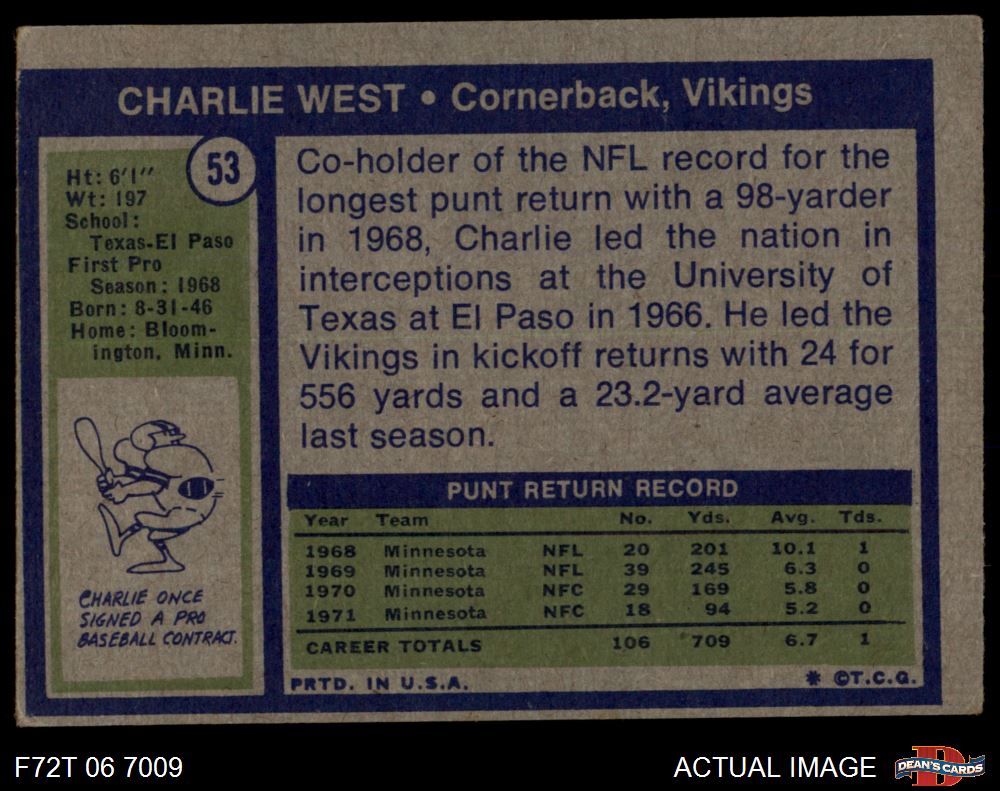 1972 Topps #53 Charlie West