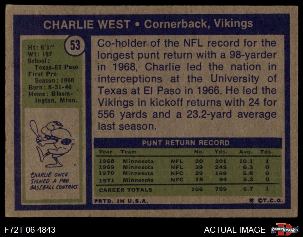 1972 Topps #53 Charlie West 2.5 - GD+