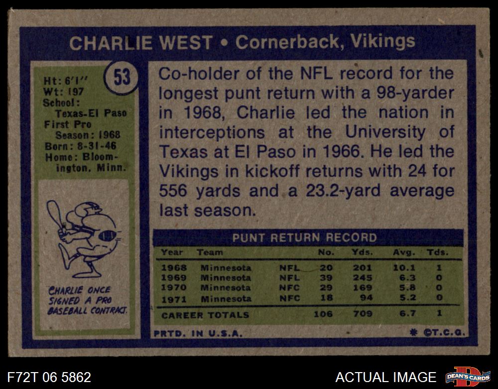 1972 Topps #53 Charlie West 4.5 - VG/EX+