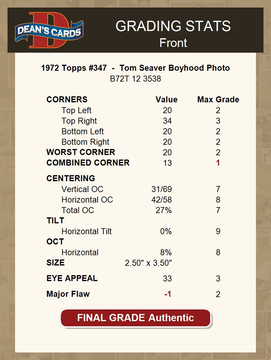1972 Topps #347 - Tom Seaver Boyhood Photo AUTHENTIC