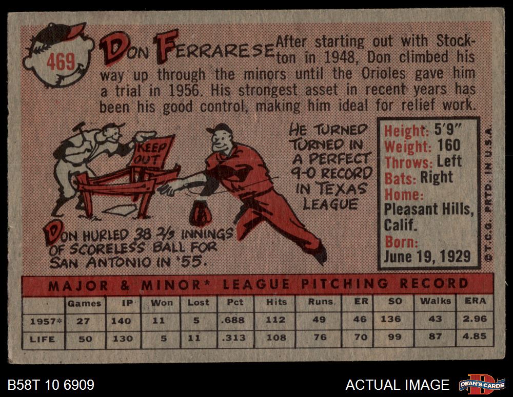 1958 Topps #469 Don Ferrarese 2 - GOOD