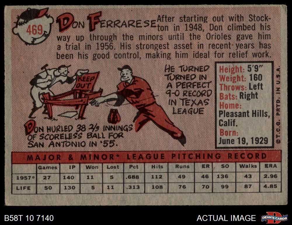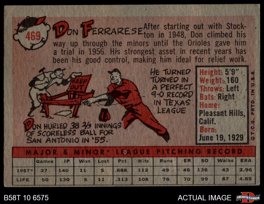 1958 Topps #469 Don Ferrarese 3 - VG