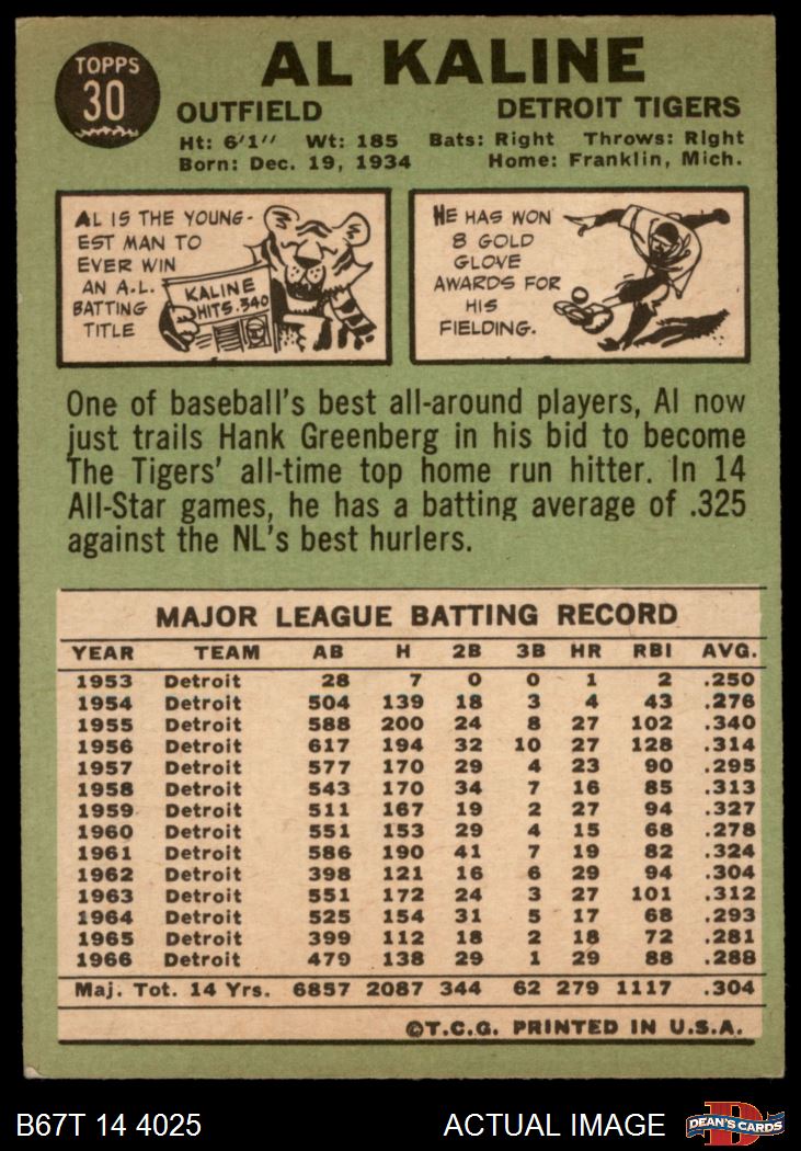 1967 Topps #30 Al Kaline 5 - EX