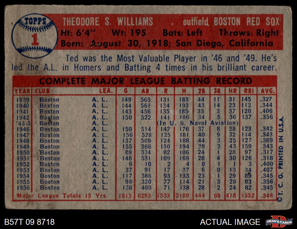 1957 Topps #1 Ted Williams 1.5 - FAIR