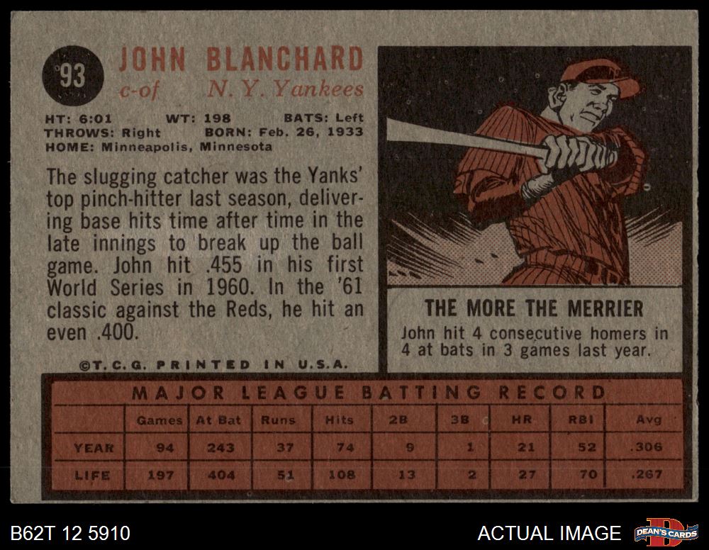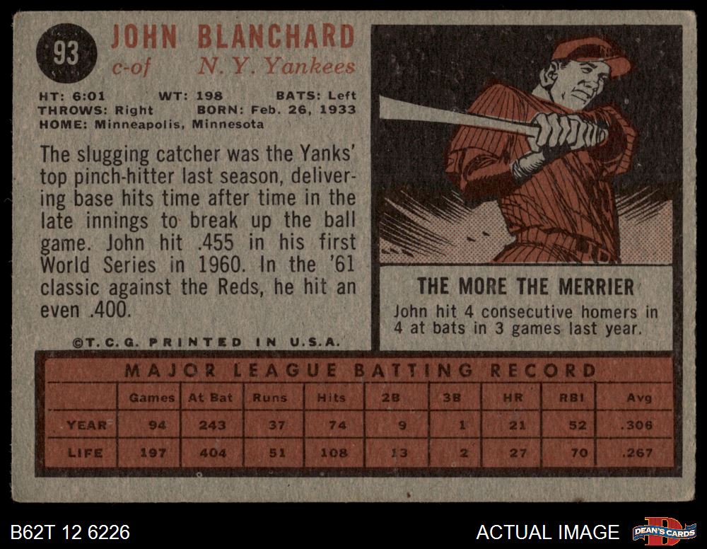 1962 Topps #93 John Blanchard 1.5 - FAIR