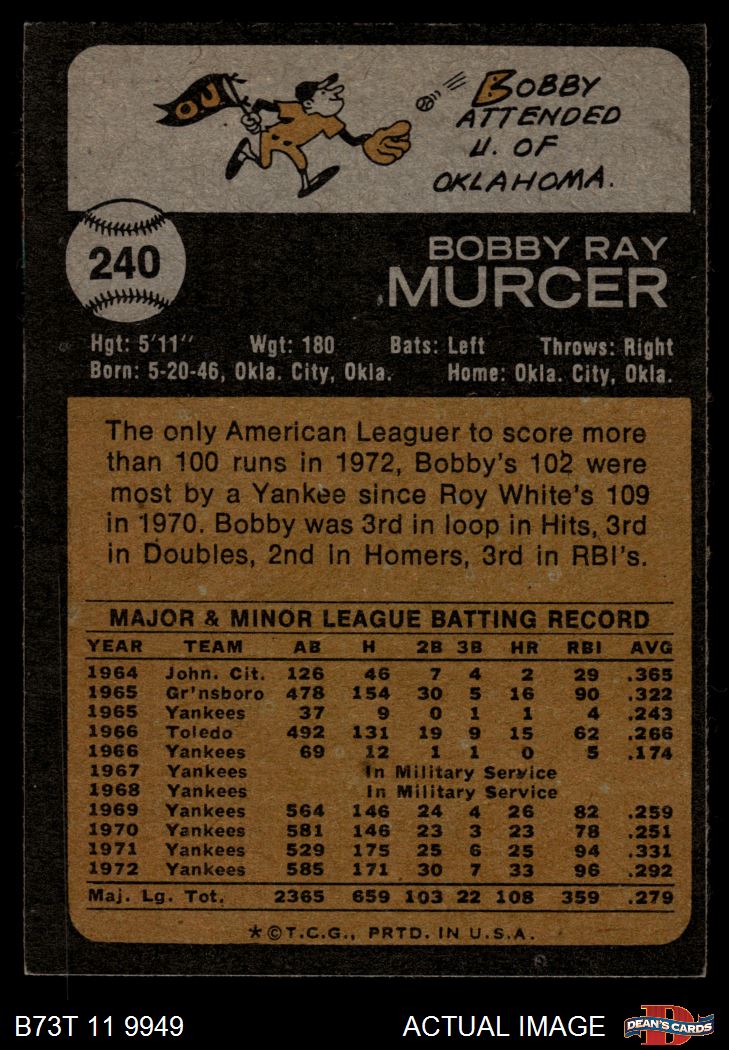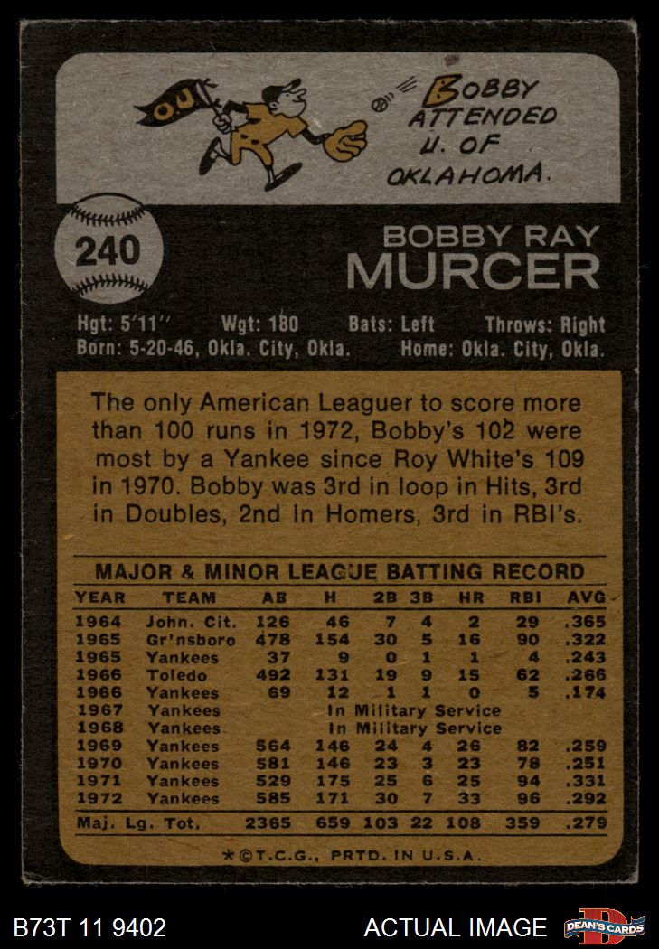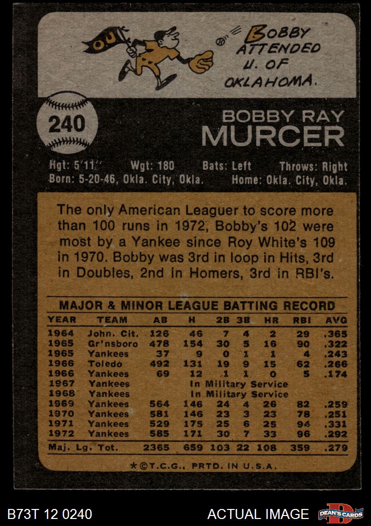 1973 Topps #240 Bobby Murcer