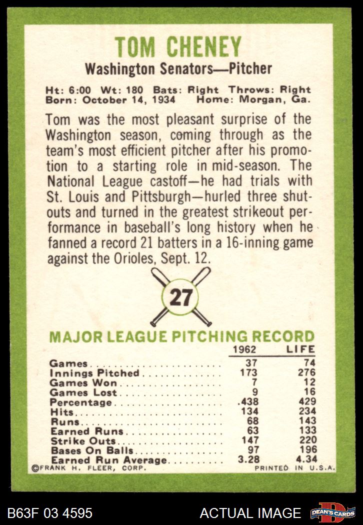 1963 Fleer #27 Tom Cheney 4.5 - VG/EX+