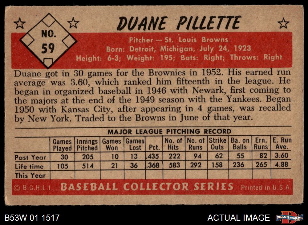 1953 Bowman B&W #59 Duane Pillette 3.5 - VG+