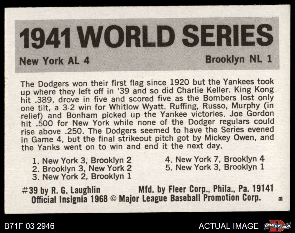 1971 Fleer World Series #39 1941 Yankees / Dodgers