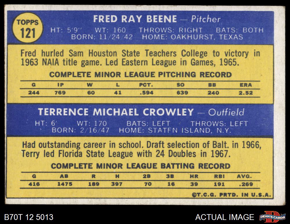 1970 Topps #121 - Fred Beene / Terry Crowley Orioles Rookies 4 - VG/EX