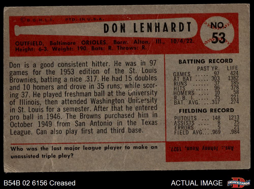 1954 Bowman #53 OF Don Lenhardt 3 - VG