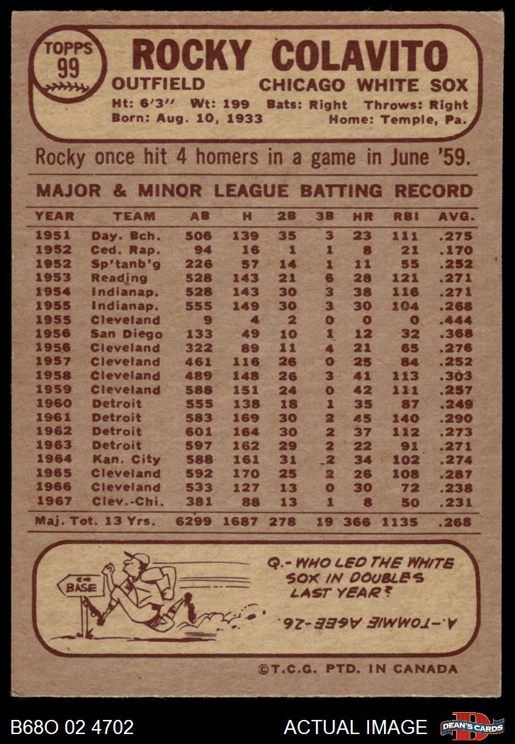 1968 O-Pee-Chee #99 Rocky Colavito 7 - NM