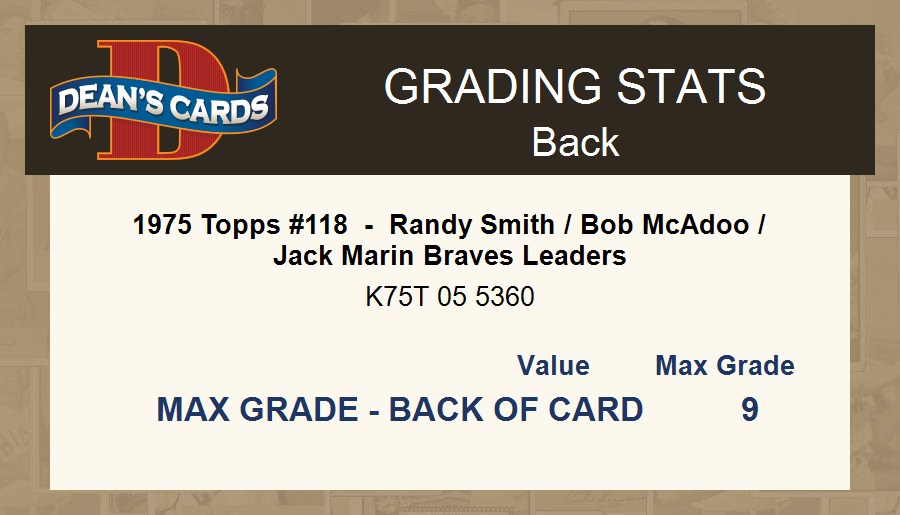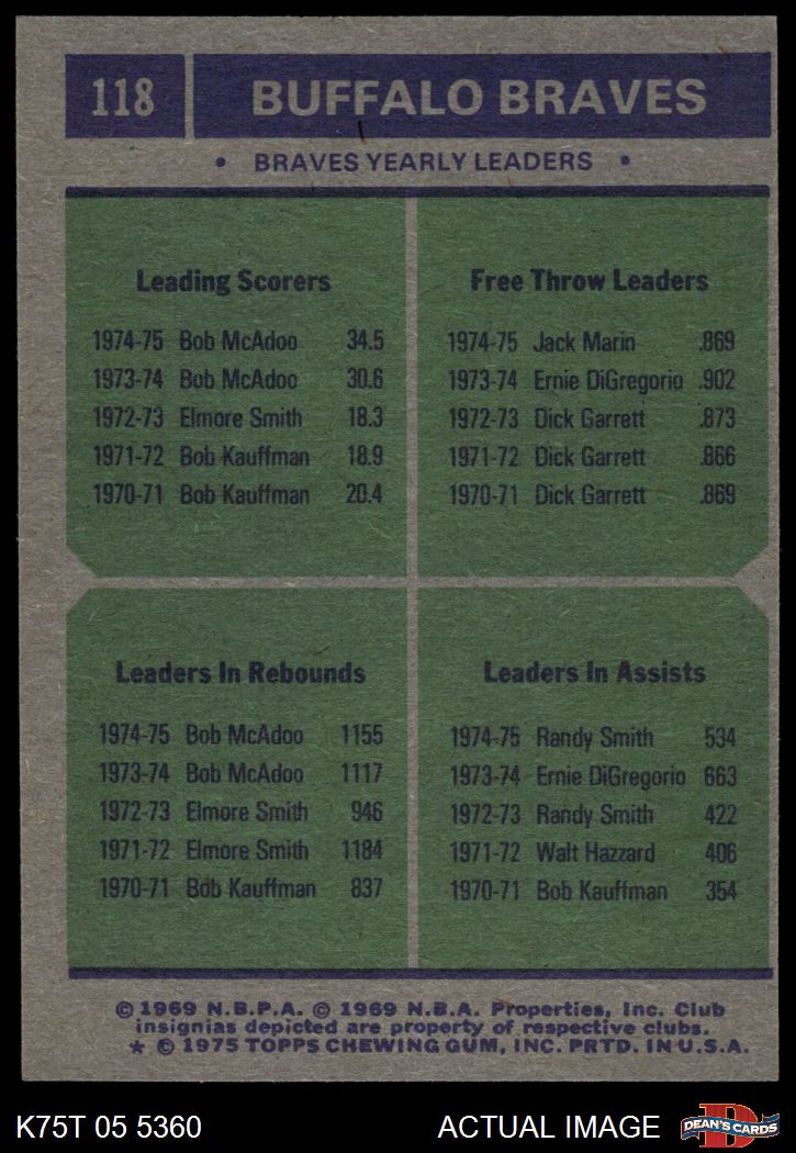 1975 Topps #118 - Randy Smith / Bob McAdoo / Jack Marin Braves Leaders 6 - EX/MT