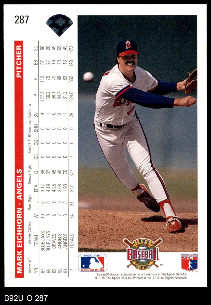 1992 Upper Deck #287 Mark Eichhorn