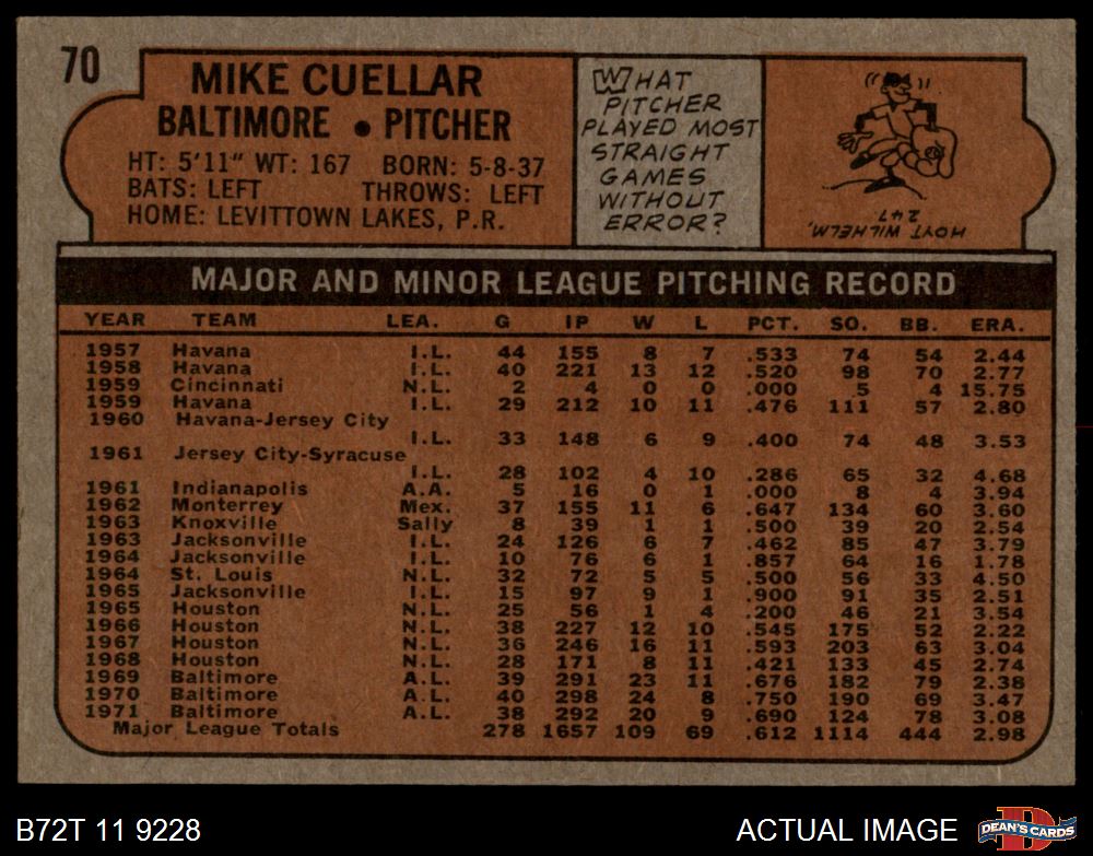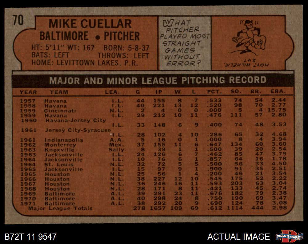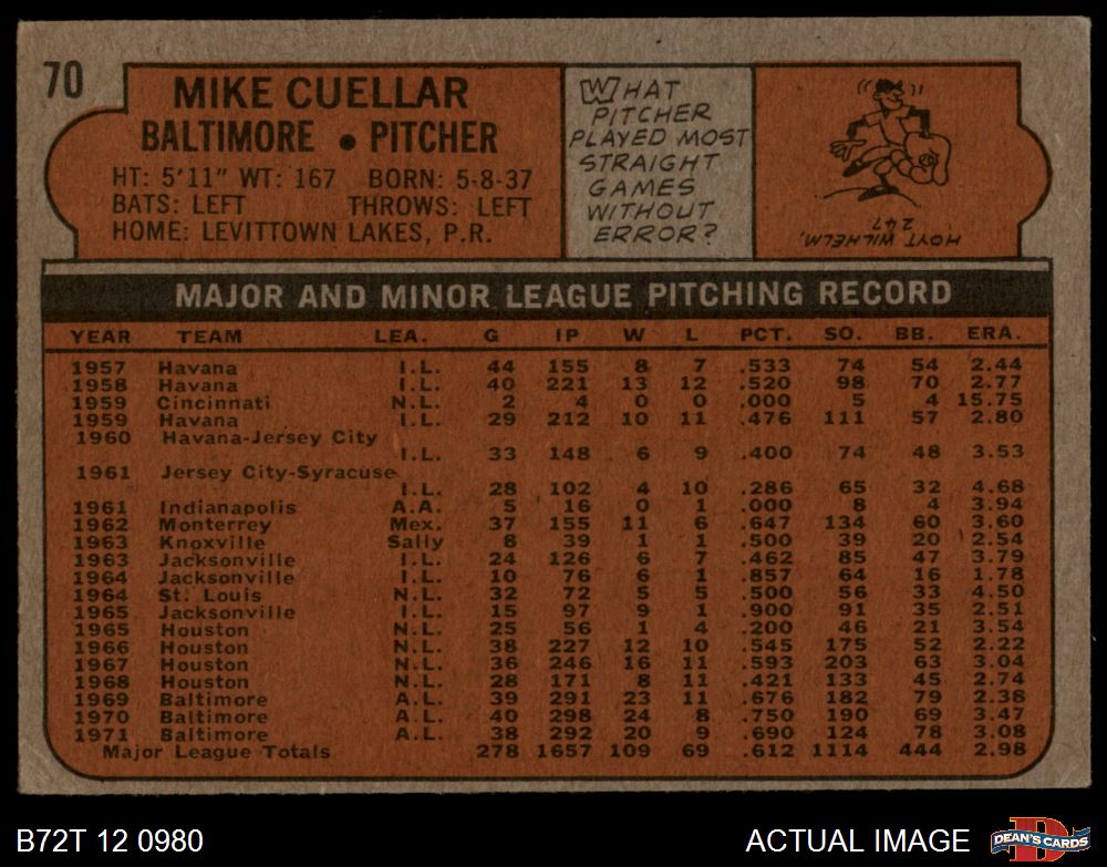 1972 Topps #70 Mike Cuellar