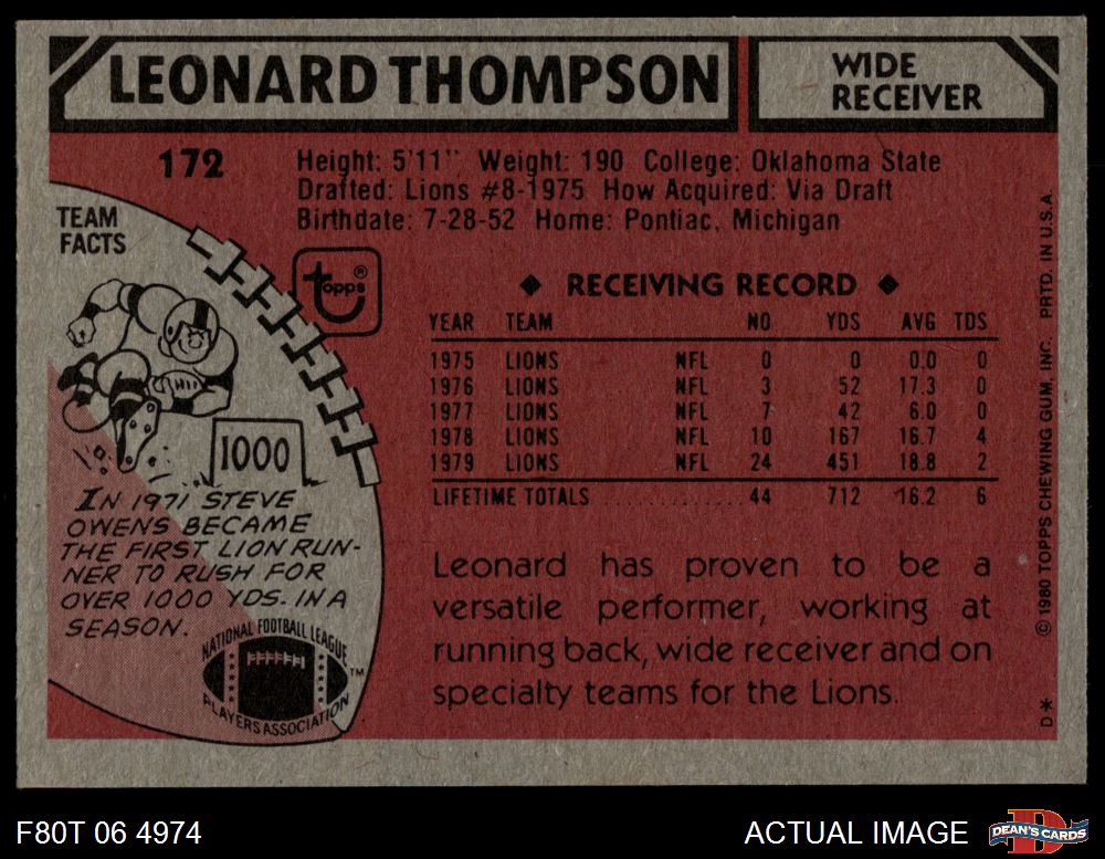 1980 Topps #172 Leonard Thompson