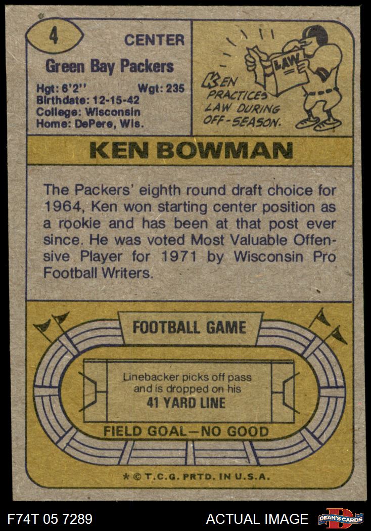 1974 Topps #4 ONE Ken Bowman 4 - VG/EX