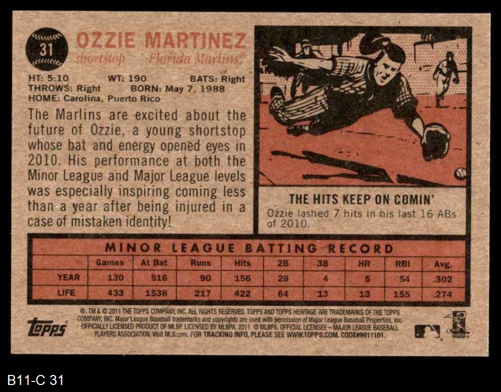 2011 Topps Heritage #31 Ozzie Martinez 8 - NM/MT