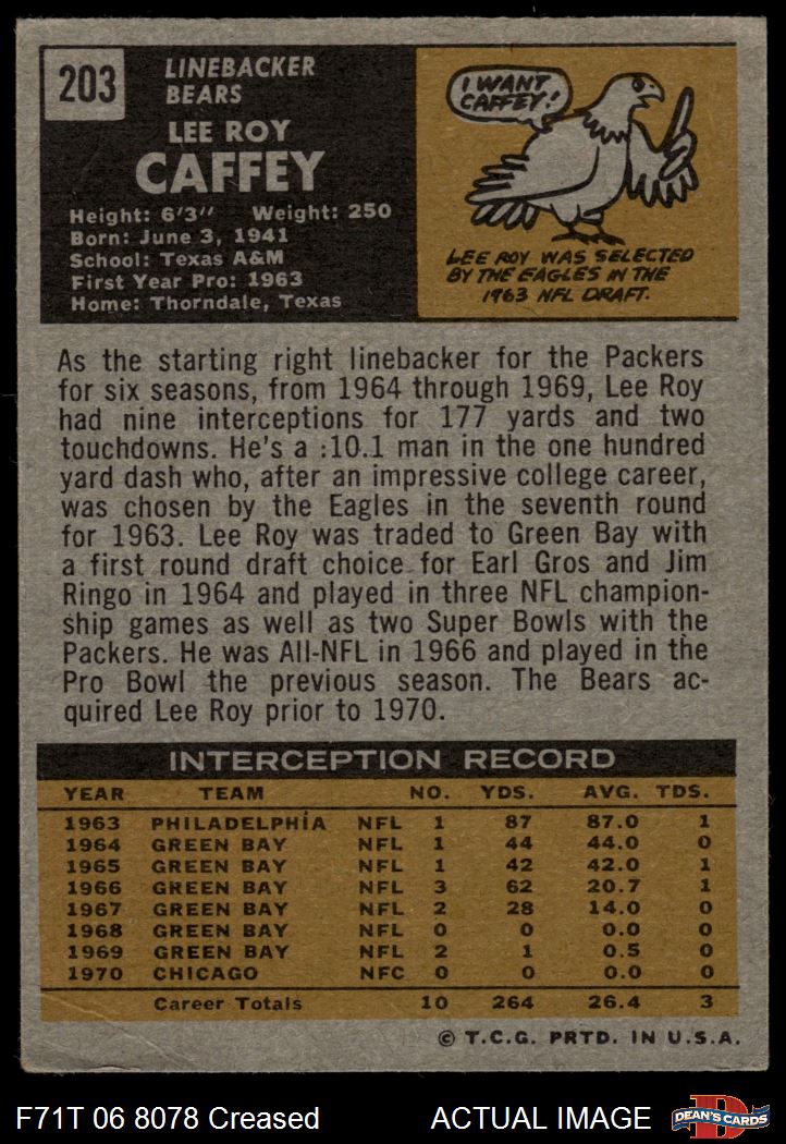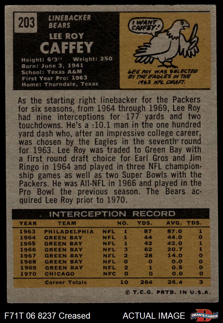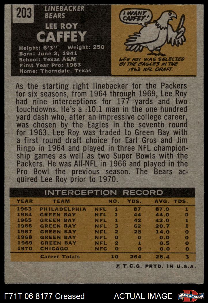 1971 Topps #203 Lee Roy Caffey 3 - VG
