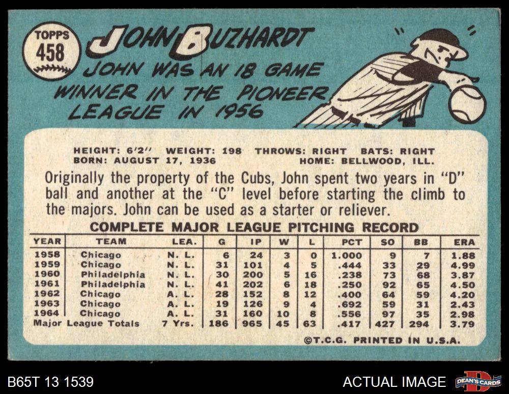 1965 Topps #458 John Buzhardt 4.5 - VG/EX+