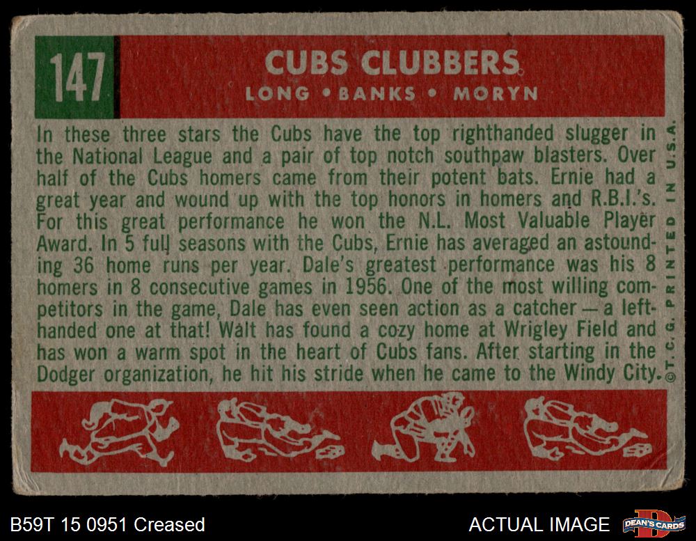1959 Topps #147 - Ernie Banks / Dale Long / Walt Moryn Cubs Clubbers 1.5 - FAIR
