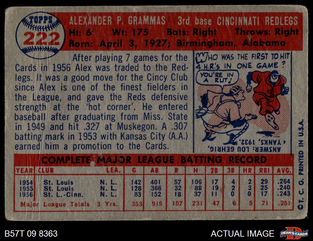1957 Topps #222 Alex Grammas 1 - POOR