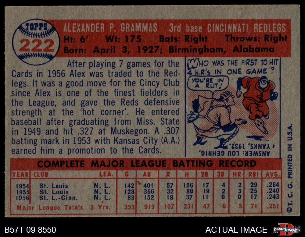 1957 Topps #222 Alex Grammas 4 - VG/EX