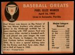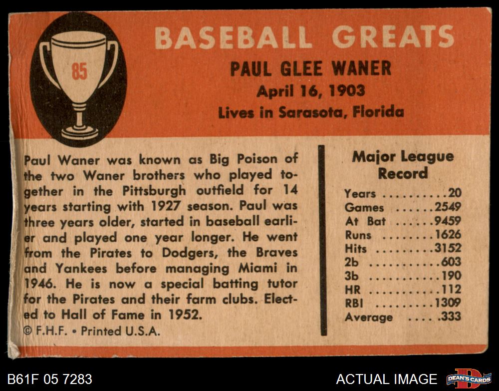 1961 Fleer #85 Paul Waner 1.5 - FAIR