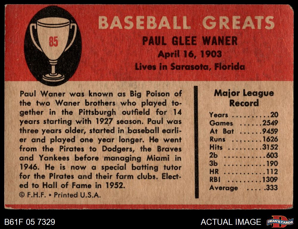 1961 Fleer #85 Paul Waner 2 - GOOD