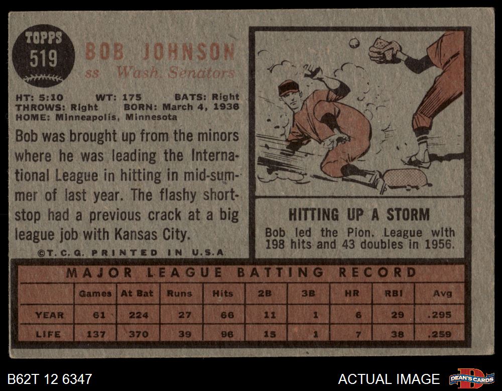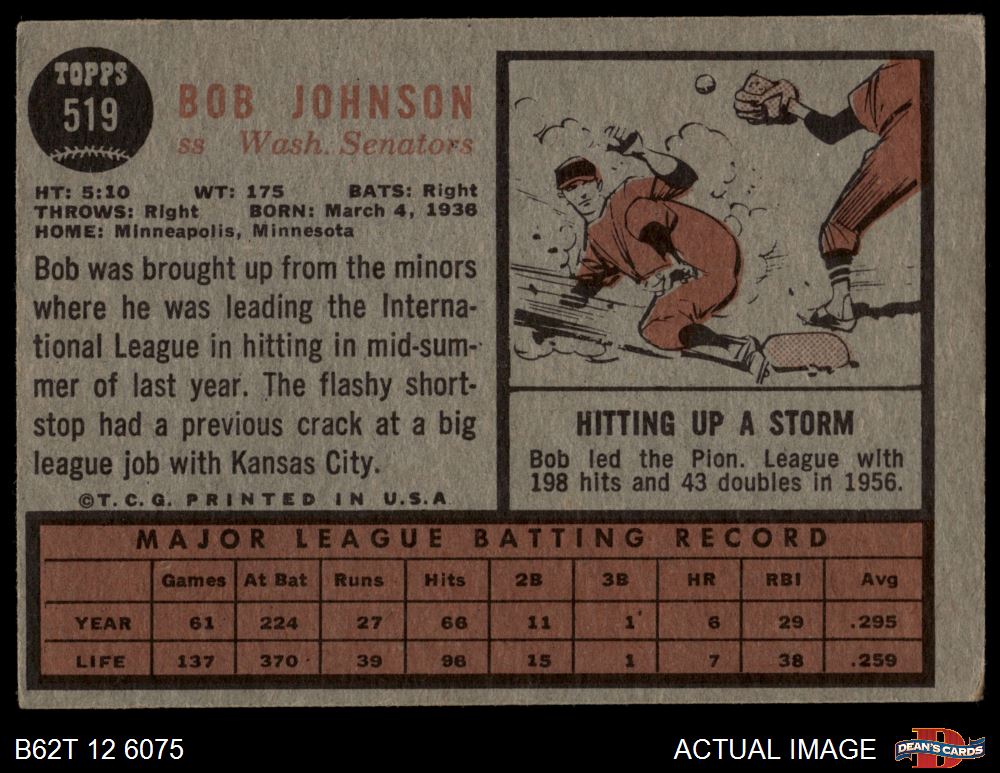 1962 Topps #519 Bob Johnson 1.5 - FAIR
