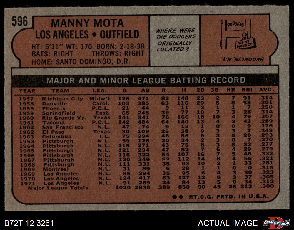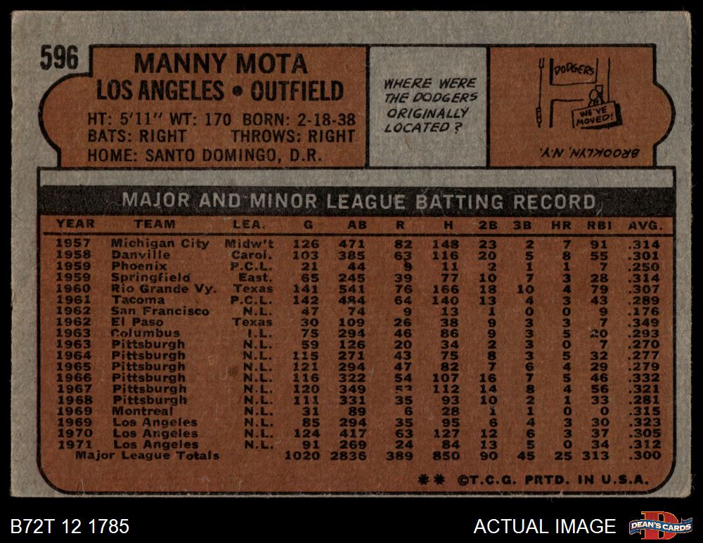 1972 Topps #596 Manny Mota 2 - GOOD