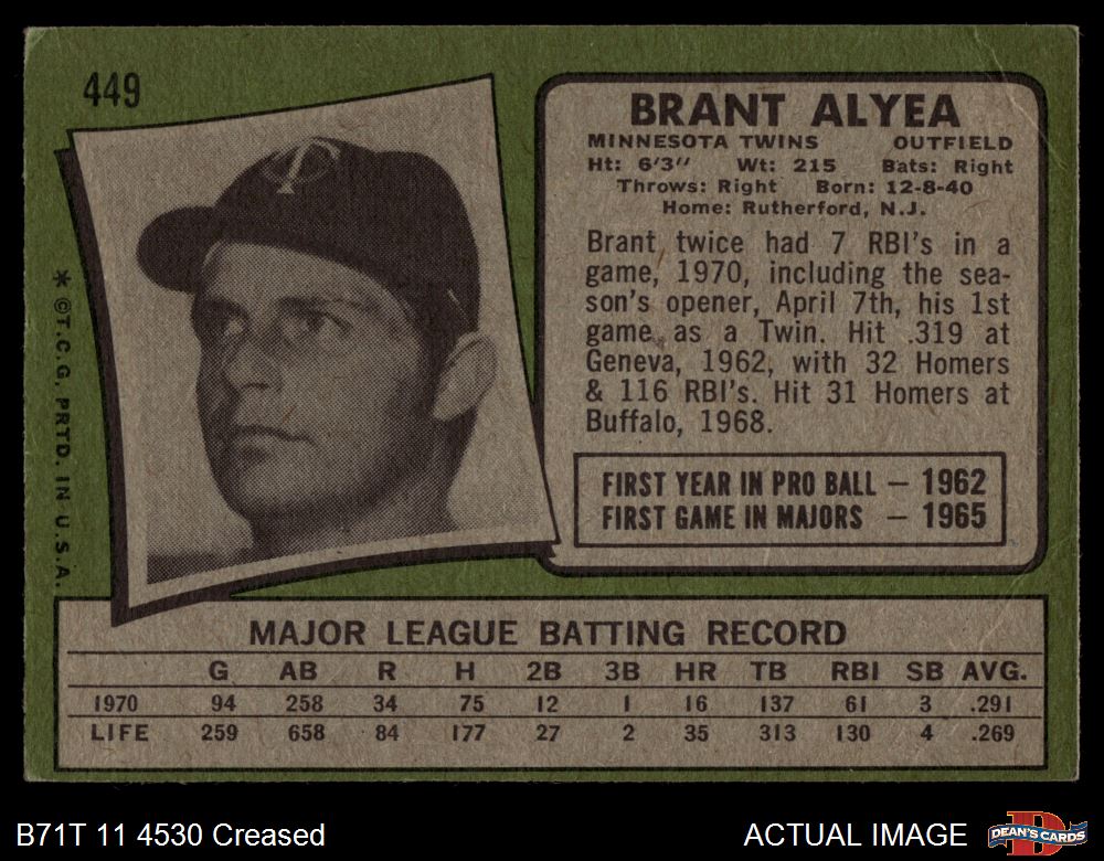 1971 Topps #449 Brant Alyea