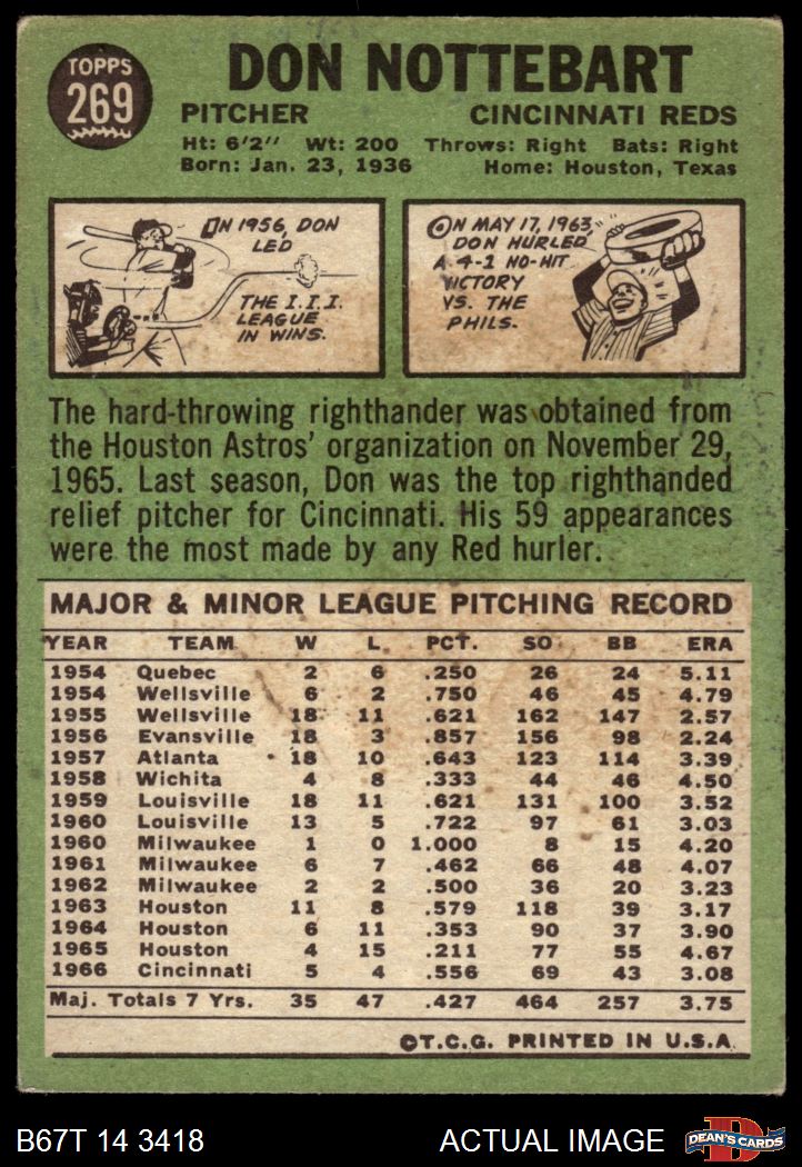 1967 Topps #269 Don Nottebart