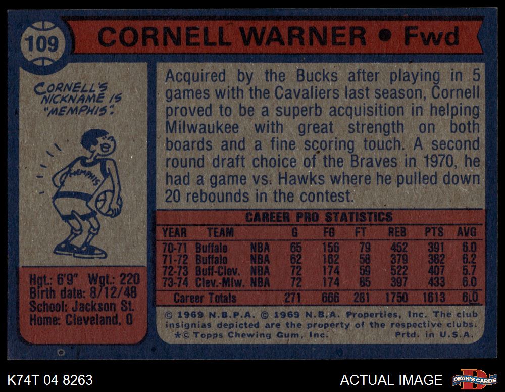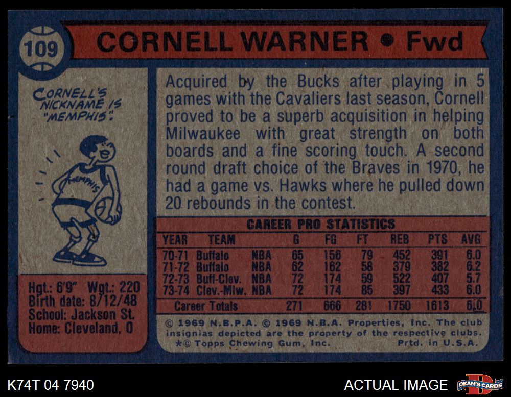 1974 Topps #109 Cornell Warner 6 - EX/MT