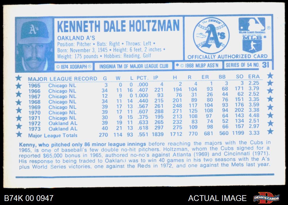 1974 Kellogg's #31 Ken Holtzman 8 - NM/MT