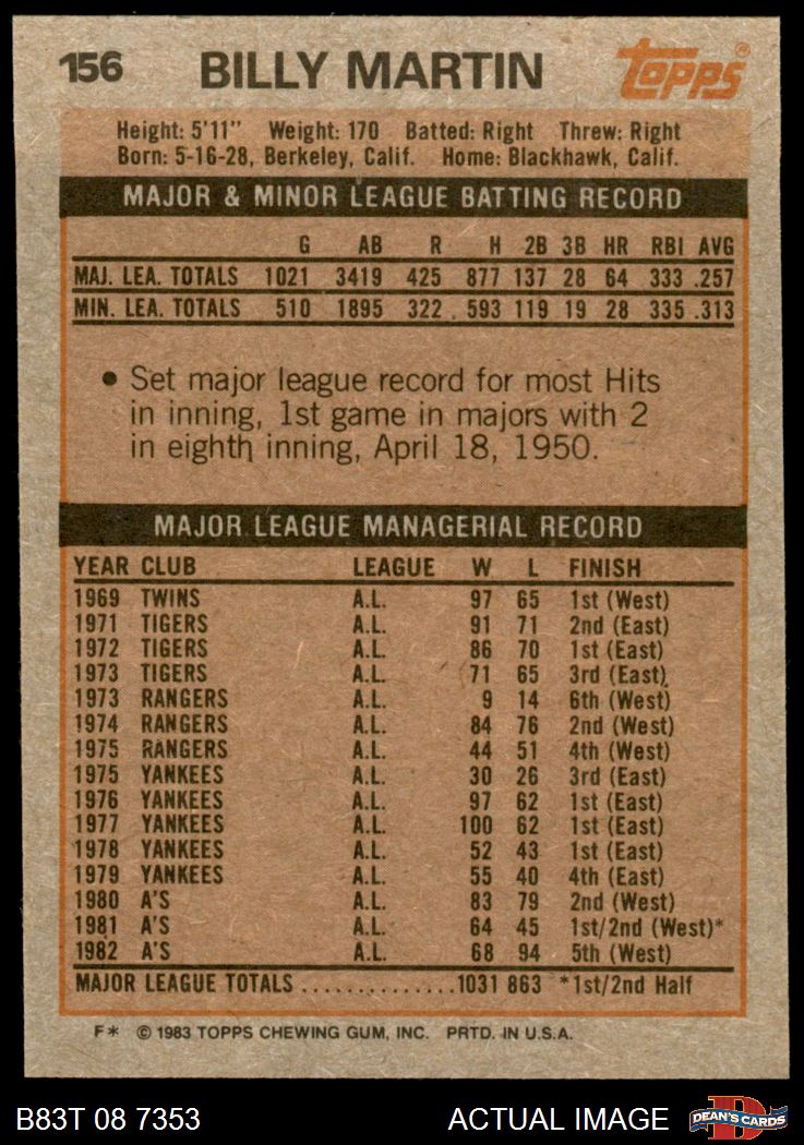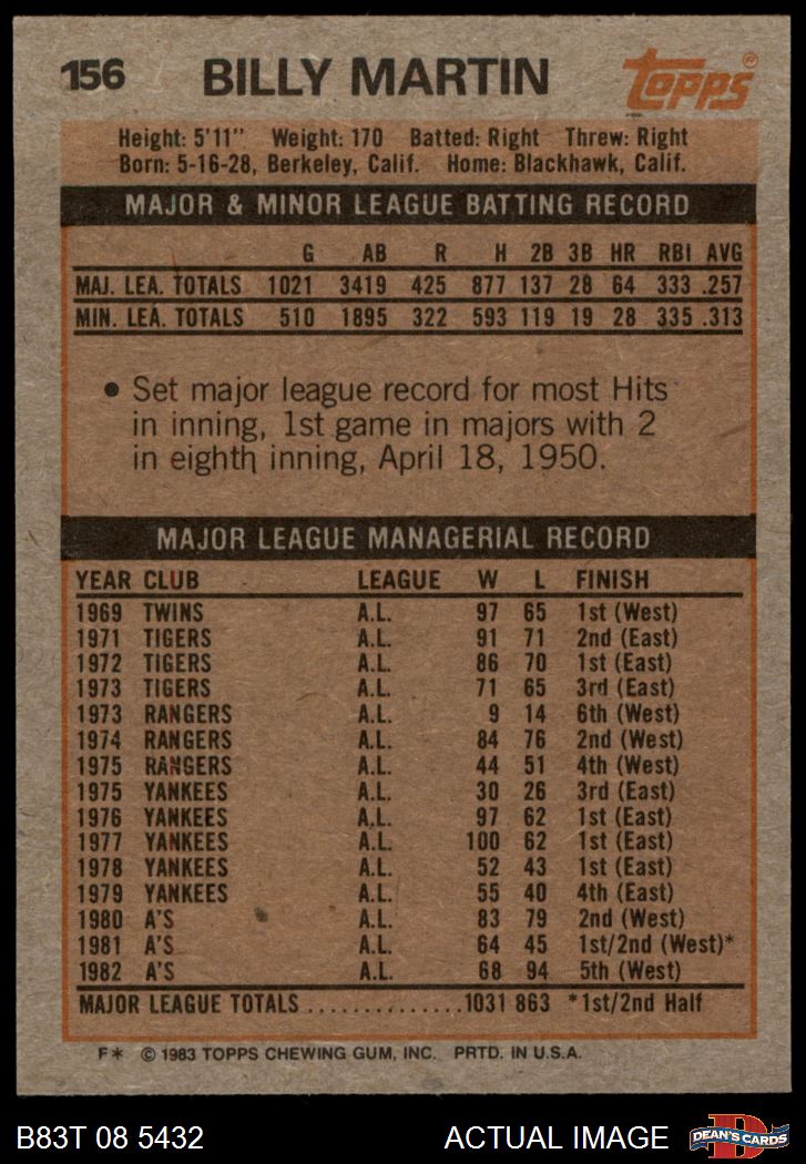 1983 Topps #156 Billy Martin
