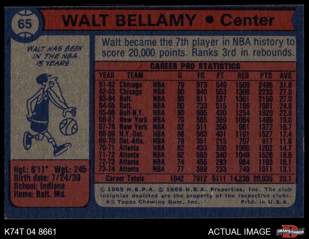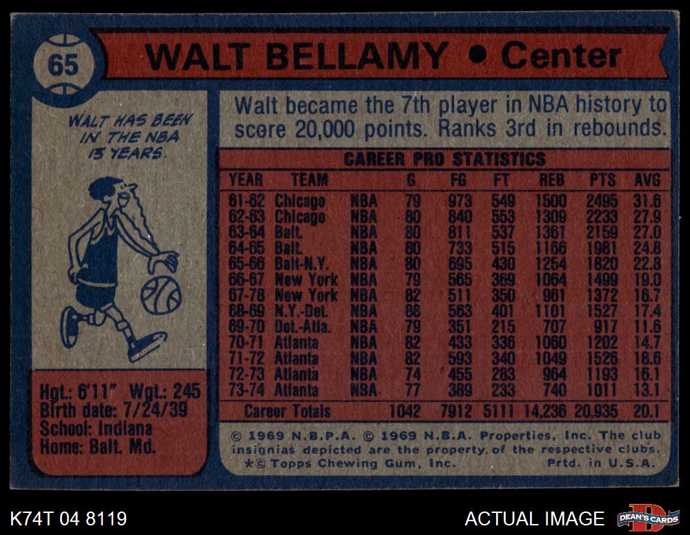 1974 Topps #65 Walt Bellamy 4 - VG/EX