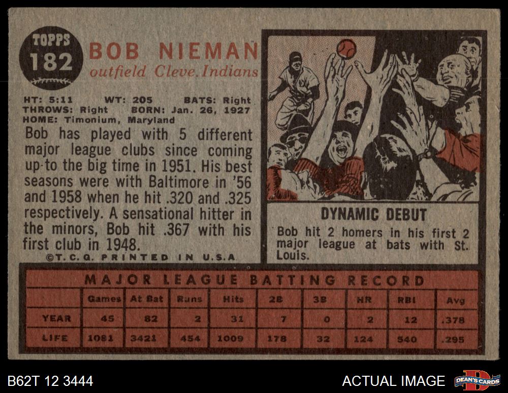 1962 Topps #182 NRM Bob Nieman 4 - VG/EX