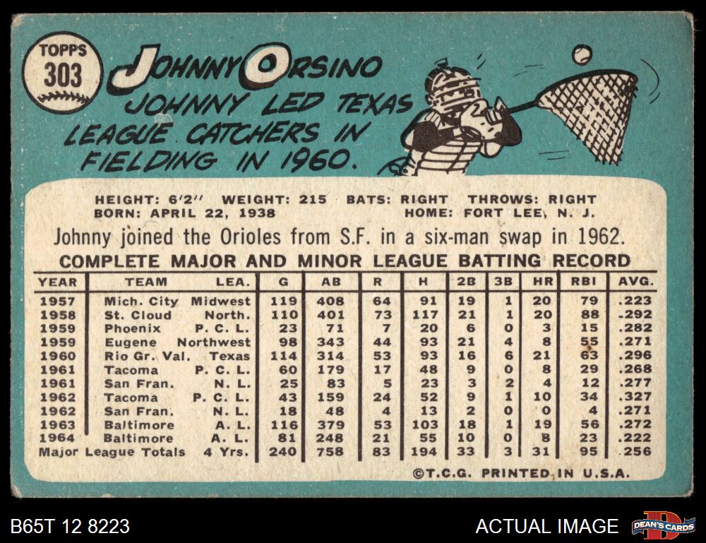 1965 Topps #303 John Orsino 1.5 - FAIR