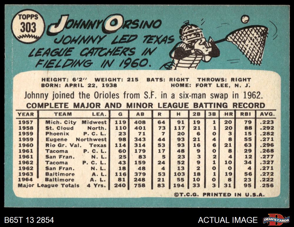 1965 Topps #303 John Orsino 8 - NM/MT