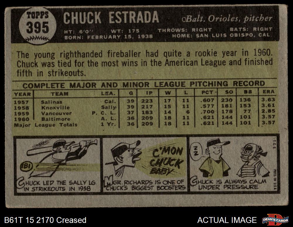 1961 Topps #395 Chuck Estrada 2 - GOOD