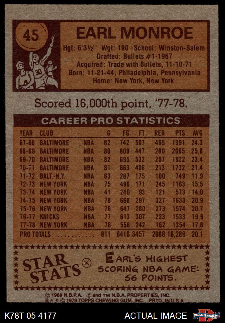 1978 Topps #45 Earl Monroe 6 - EX/MT