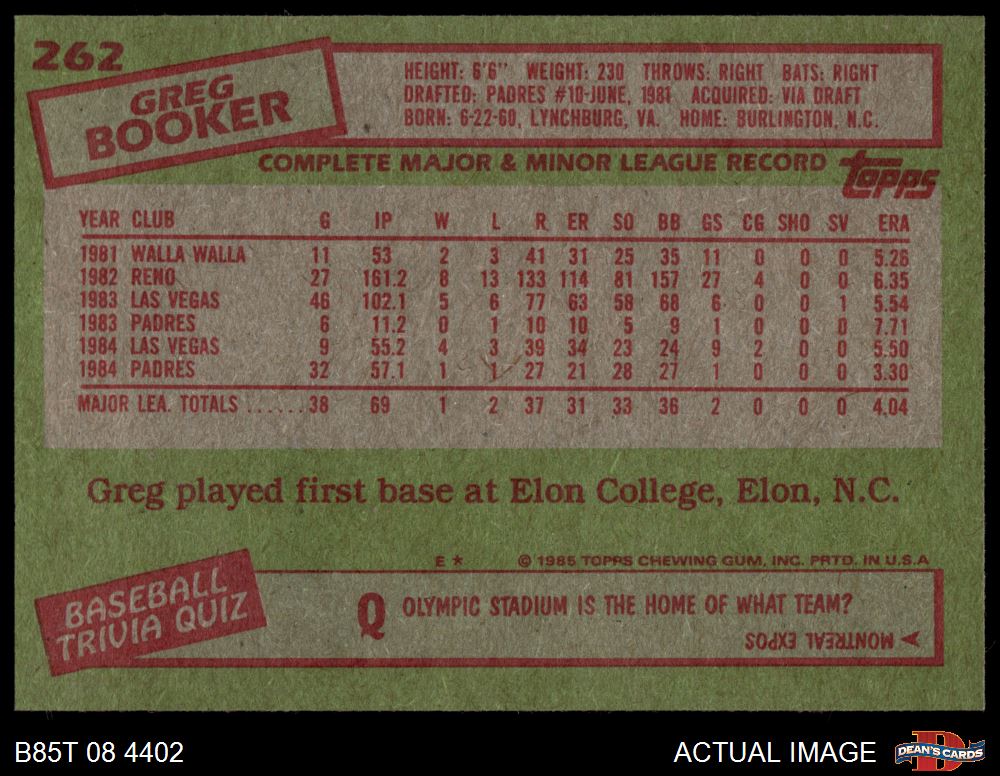 1985 Topps #262 Greg Booker 7 - NM