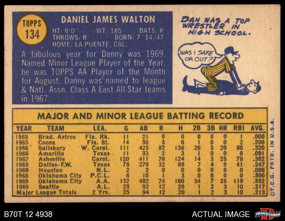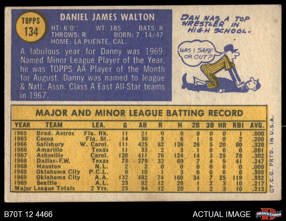 1970 Topps #134 Danny Walton 4 - VG/EX