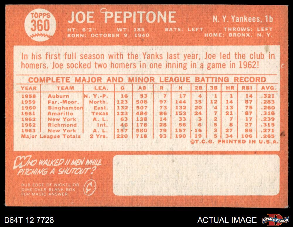 1964 Topps #360 Joe Pepitone 3 - VG