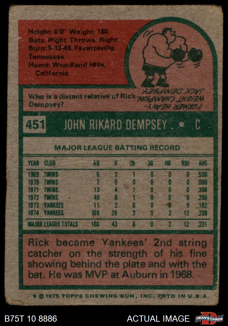 1975 Topps #451 Rick Dempsey 1 - POOR
