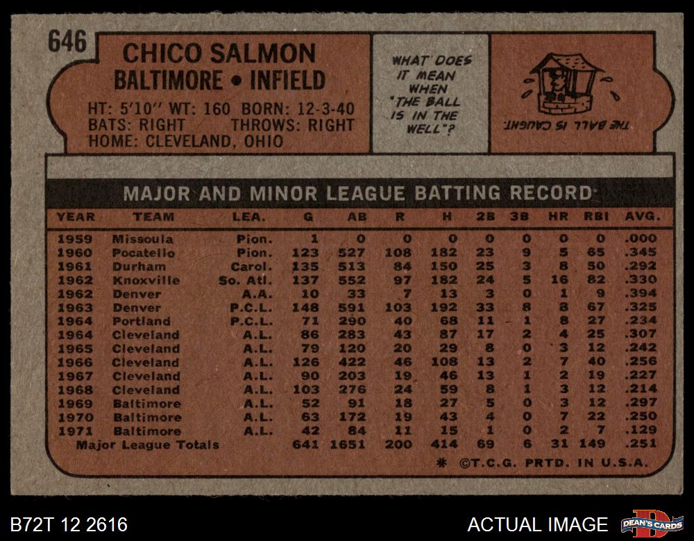 1972 Topps #646 Chico Salmon 4 - VG/EX