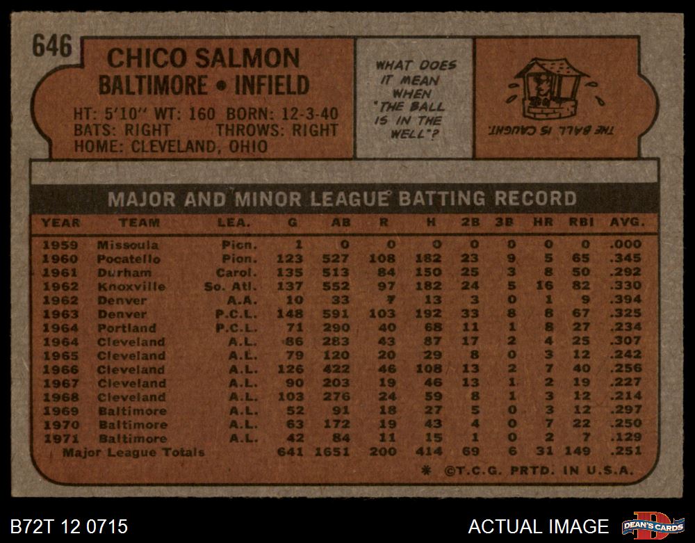 1972 Topps #646 Chico Salmon 4.5 - VG/EX+