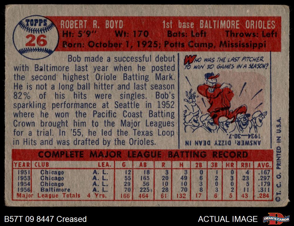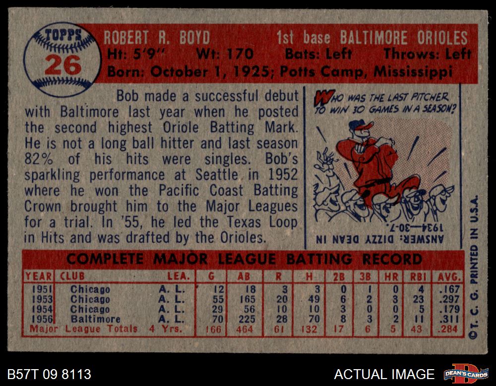 1957 Topps #26 Bob Boyd