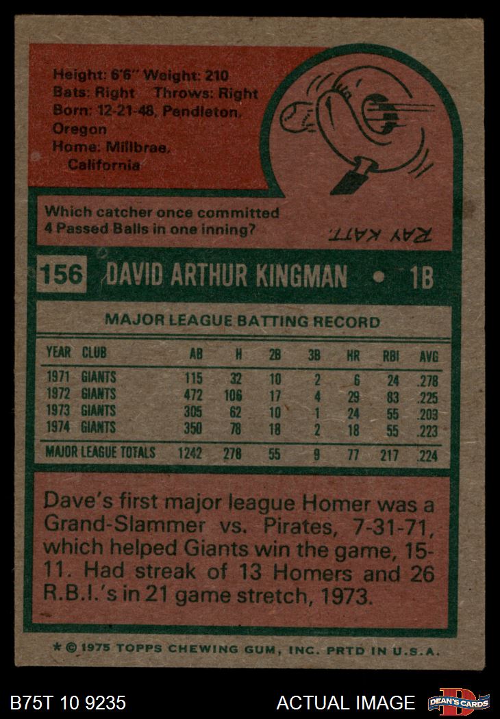 1975 Topps #156 Dave Kingman 6 - EX/MT